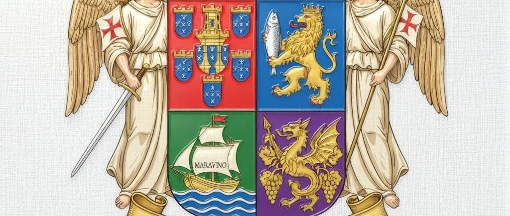 A História por Trás do Brasão do Reino Unido de Grão Portugal e Galícias do Arenque Algarves Maravino